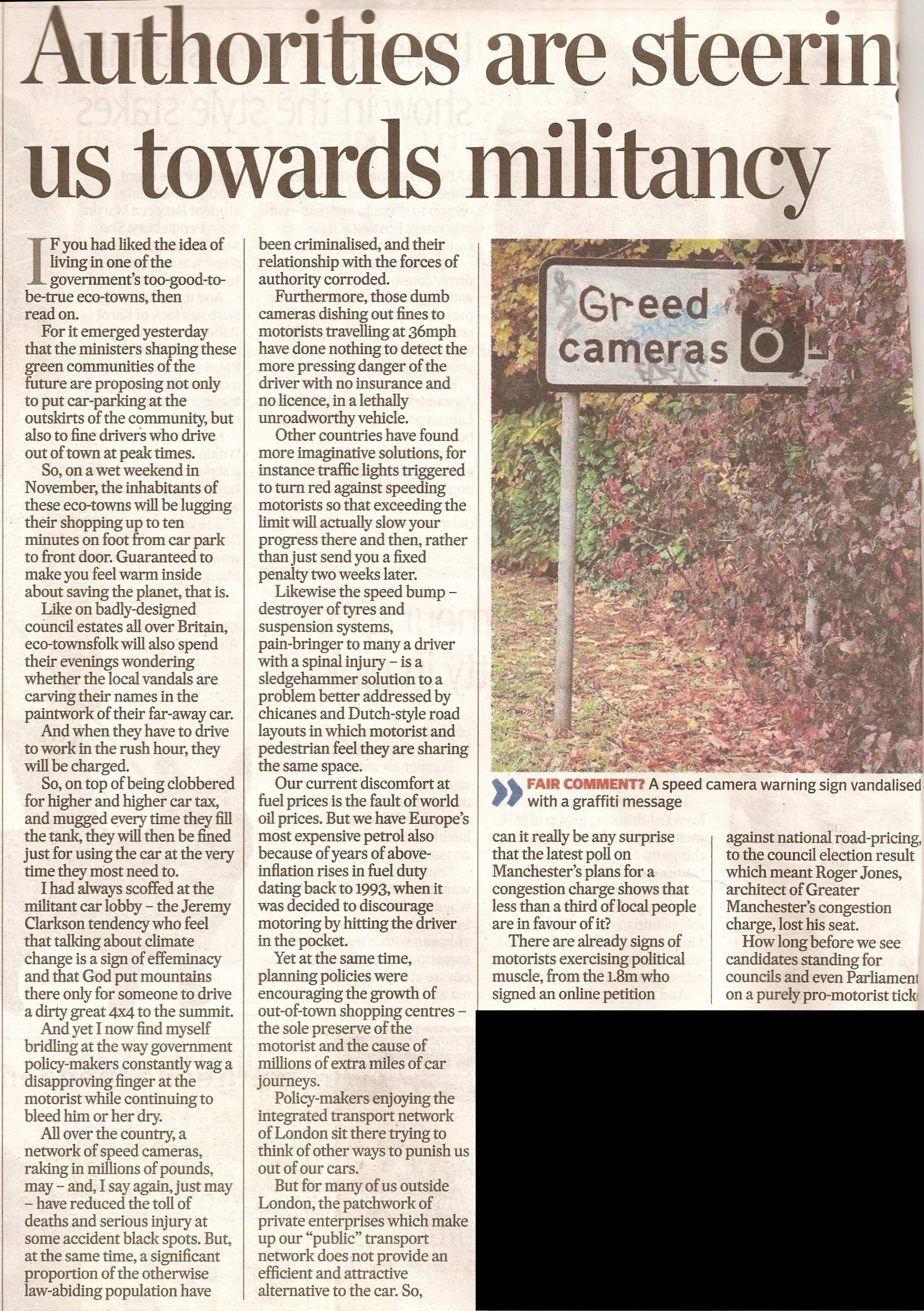 ![]() | Recognise your car? Some anonymous poet is also circulating some brilliant spoof versions of the Yes Campaign posters - "ONLY AN IDIOT WOULD VOTE YES". Our favourite is the one that says - "VOTE YES because I won't pay the congestion charge - I'll just clone your number plate!!! - (Speeding and red light jumping will also increase as drivers race to beat the clock at the toll cordons.)" |